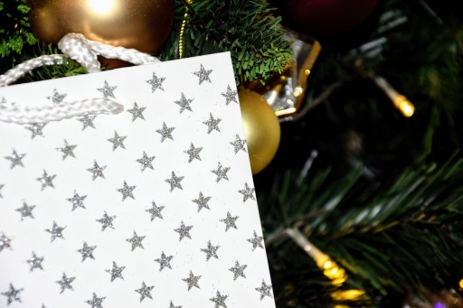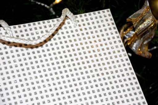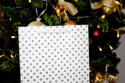 Подарочный пакет с белой сребрна-бракадой 18x23x10 см 3 дизайн