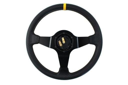Sportowa kierownica firmy Slide + naba - adapter kierownicy. Rewelacyjnie leży w dłoniach. Wykończenie skórą ekologiczną o strukturze carbonu. Sprawdzona w boju - nie gnie się, nie wyciera nadmiernie. Posiada przycisk klaksonu.