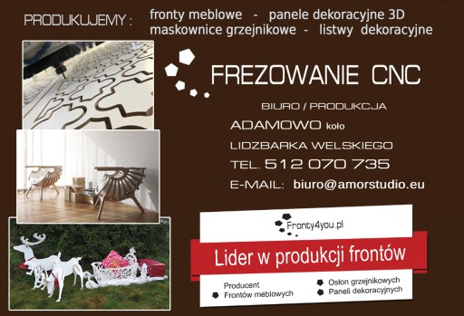 Oferujemy usługi CNC, polegające na obróbce materiałów za pomocą nowoczesnej frezarki, która gwarantuje precyzję oraz wyjątkową powtarzalność w wycinaniu dowolnych kształtów. Wykonujemy również ozdobne frezy oraz grawery na zamówienie. Materiały, które poddajemy obróbce to drewno, sklejka, płyty laminowane, tworzywa sztuczne oraz miękkie metale.