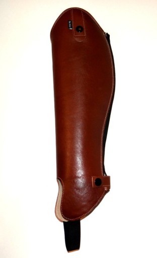 Czapsy wykonane ze skóry naturalnej bydlęcej,licowej gat.1 z tyłu wstawka z elastycznej gumy(rozciągliwość do 1cm) zapinane na zamek, góra czapsów lamowana skórą.