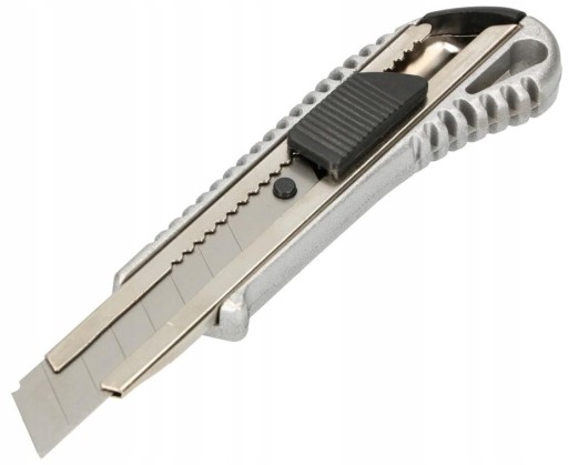 Nożyk do tapet wykonany z wysokiej jakości metalu. Uniwersalne wysuwane ostrze 18 mm. Ostrze łamane. Metalowa prowadnica. Metalowa rękojeść. Poręczny i wytrzymały dzięki zastosowaniu wysokiej jakości materiałów.