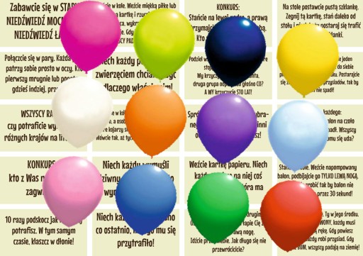 - 20 kolorowych balonów z ukrytymi zadaniami