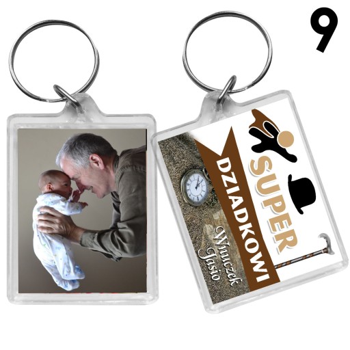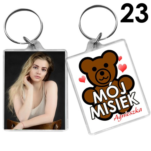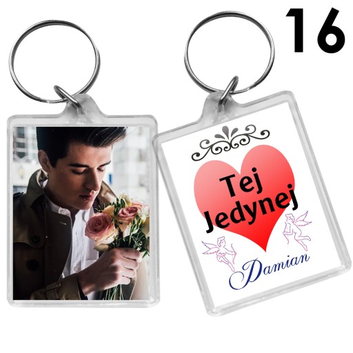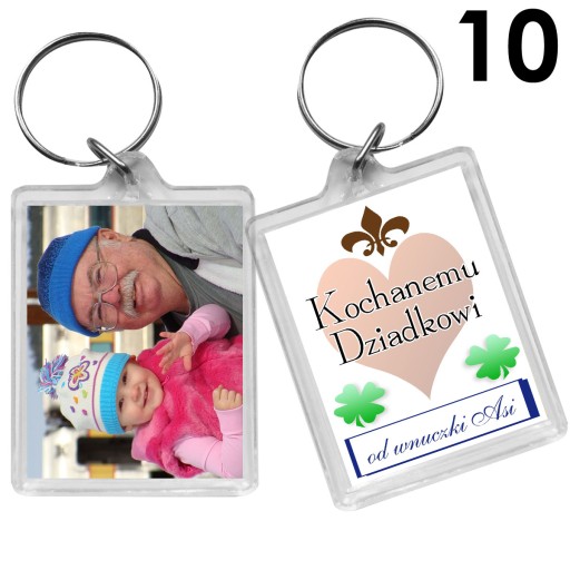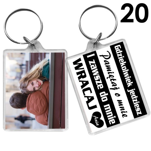 Brelok jest dwustronny; po jednej stronie znajduje się zdjęcie, po drugiej grafika. Możemy także zamieścić zdjęcia po obydwu stronach