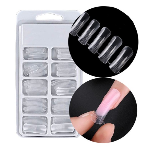 Formy wielokrotnego użytku o specjalnie wyprofilowanej krzywej C. Doskonale przylegają do płytki paznokcia.