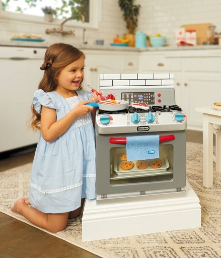 - Interaktywną Kuchenkę z Piekarnikiem Little Tikes zaprojektowano z myślą o dzieciach chcących godzinami bawić się w pieczenie i gotowanie, jakby obsługiwali urządzenie będące wyposażeniem prawdziwej kuchni
