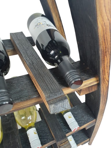 - Stojak wykonany z desek, klepek z dębowej beczki w której niegdyś przez lata leżakowało whisky, wykonany ręcznie z niezwykłą dbałością o szczegóły, będzie doskonałym elementem dekoracji twojego domu oraz sprawdzi się jako funkcjonalne miejsce na wszelkie mniej lub bardziej szlachetne trunki.