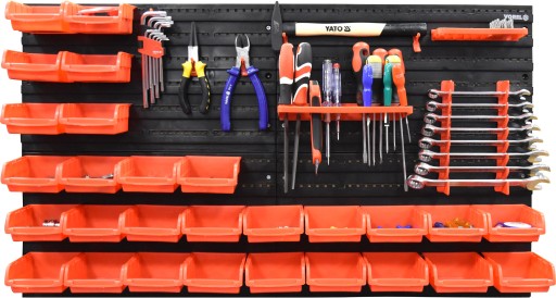 Tablica do wygodnego przechowywania narzędzi i drobnych akcesoriów w warsztacie i garażu. Pomaga w utrzymaniu porządku, a system pojemników i wieszaków łatwo dostosować do swoich potrzeb.