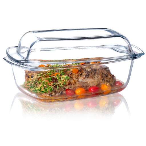 Naczynie jest transparentne, więc w każdej chwili można skontrolować poziom przygotowania mięsa w piekarniku. Pojemność brytfanny 5,1 litra daje możliwość jednorazowego przyrządzenia sporej ilości mięsa.
