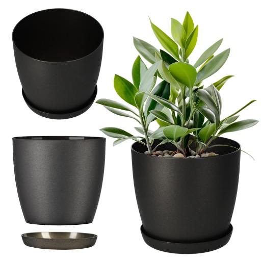 DONICZKA OSŁONKA DONICA 12cm NA KWIATY Z PODSTAWKĄ GRAFITOWA DO SALONU