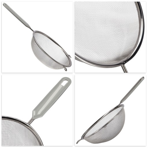 Nie mniej ważna od wytrzymałości jest ergonomia i wygoda. Zadbaliśmy o to, zaopatrując sitko w komfortową rączkę. Zapewnia ona pewny chwyt w dłoni i swobodne manewrowanie narzędziem. W dodatku na końcu rączki znajduje się otwór, na którym możesz zawiesić sitko. Przygotowaliśmy dla Was kilka wersji rozmiarowych sitka: 7 cm, 10 cm, 12 cm, 16 cm, 18 cm i 20 cm. A dla estetów - różne warianty kolorystyczne.