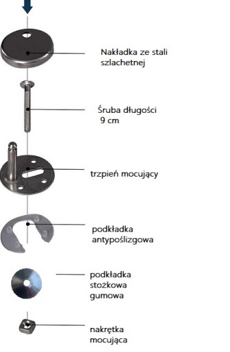 - Mocowania - wykonane ze stali nierdzewnej z podkładkami antypoślizgowymi.