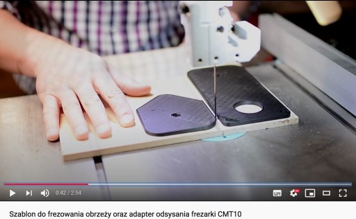 Sprzedaję dwa drukowane szablony z tworzywa (mniejszy i większy), dzięki którym można za pomocą freza kopiującego, bądź tulei lub pierścienia kopiującego, wykonać idealną dodatkową podstawę do frezarki krawędziowej. Szablon ma przygotowane otwory, które pomogą przygotować końcowe otwory w miejscach fabrycznego montażu podstawy oraz freza.