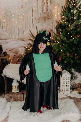 Smok strój długość peleryny mierzonej bez kaptura około 70 cm.Teraz możesz zostać smokiem bez żadnego problemu . Wyprodukowano w Polsce . Produkt rękodzieło.