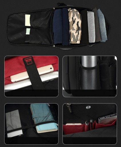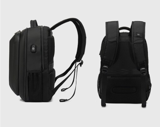 Trzykomorowy plecak na laptopa marki AoPin został wykonany z wytrzymałego, niebrudzącego się i wodoodpornego materiału Oxford. Przód plecaka jest usztywniany i doskonale chroni zawartość przed uderzeniami i uszkodzeniami. W przedniej kieszeni znajduje się organizer na akcesoria, długopisy oraz zapinana na zamek kieszeń z systemem RFID zabezpieczającym przed sczytaniem danych np. z karty. W środkowej komorze znajduje się przestrzeń wystarczająca na zapakowanie rzeczy na ok. 3- do 5-dniową podróż, oraz 4 pojemne kieszenie. Dodatkowo jest ona rozpinana jak walizka (pod kątem 180), dzięki czemu jest łatwy dostęp do całej jej zawartości. W trzeciej komorze, z tyłu plecaka znajduje się miękka kieszeń na laptopa do 16,4 oraz kieszonka na tablet do 10, obie zapinane na elastyczny pasek z rzepem. Po bokach plecaka znajdują się elastyczne, siatkowe kieszenie np. na ulubiony napój lub parasolkę. Szelki plecaka są profilowane i wyłożone sprężystymi gąbkami, aby plecak był wygodny podczas noszenia nawet dużego obciążenia. Na obu szelkach umieszczono małe kieszonki na kartę lub identyfikator, oraz zaczep na okulary. Tylna ściana plecaka wyłożona została sprężystymi, oddychającymi gąbkami o strukturze plastra miodu, aby plecak był wygodny nawet przy długim noszeniu. Umieszczono tutaj również nylonowy pas, dzięki któremu można założyć plecak na rączkę torby lotniczej. Z tyłu plecaka schowana jest również antykradzieżowa kieszonka na portfel lub telefon, która ochroni Twoje najcenniejsze rzeczy. Ponadto plecak wyposażony jest w zewnętrzne złącze USB, dzięki czemu nie ma konieczności wyciągania power banka z plecaka, aby naładować telefon lub inne przenośne urządzenie. Wielofunkcyjny plecak Aopin z pewnością przypadnie do gustu osobom, które są aktywne i dużo podróżują.