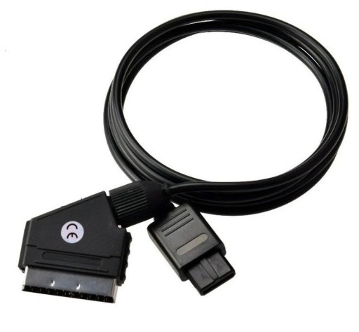 Kabel RGB umożliwiający podłączenie do gniazda SCART telewizora konsoli SNES, Nintendo 64, GameCube w wersji PAL (EU). Kabel RGB oferuje wyższą jakość obrazu niż kabel AV (3 wtyki RCA).