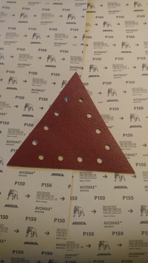 Delta 285mm x 285mm z otworami 12 h na rzep firmy Mirka do szlifowania aluminium,drewna,zwykłej stali,szlifowanie farb lakierów,tynki,gipsy,szpachle,plastik.