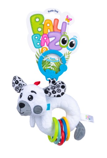 Ten uroczy, kontrastowy szczeniaczek zainteresuje każdego maluszka. Zdobią go metki o zróżnicowanej fakturze i kolorowe kółeczka, które wesoło grzechoczą przy potrząsaniu. Dzięki praktycznej klamrze bez trudu przymocujesz go w wybranym miejscu, aby zawsze mógł towarzyszyć Twojemu Bobaskowi.