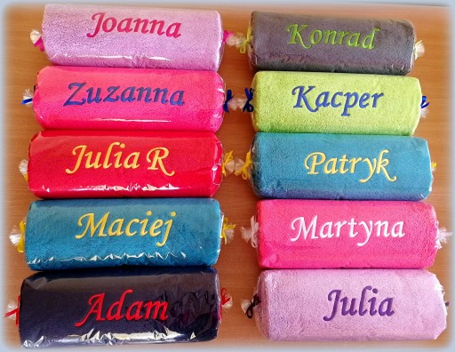 Ta aukcja i cena dotyczą kompletu 2 szt. dużych ręczników kąpielowych 70x140 cm z Twoim haftem w postaci imienia lub dowolnego 1 SŁOWA (bez grafiki).