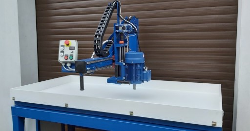 Motoreduktor do podnoszenia tarczy posiada licznik pokazujący przesuw (co 0,1 mm) dzięki temu możemy precyzyjnie ustawić docisk tarczy polerskiej.