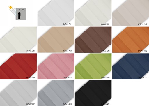 SARA - gęsto tkana o widocznym gładkim splocie nici. Występuje również w tkaninach z powłoką odbijającą promienie słoneczne (SARA PEARL).