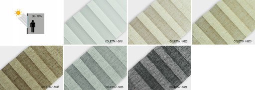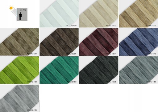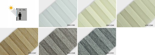 NINA - tkanina tkana z nici o różnych odcieniach tworzących poziome pasy. Występuje również w tkaninach z powłoką odbijającą promienie słoneczne (NINA PEARL).