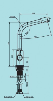 - Podłączenie wody ciepłej i zimnej: gwint wewnętrzny 1/2" (2 przewody w zestawie)