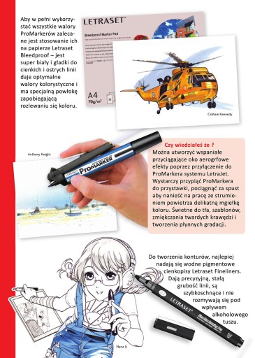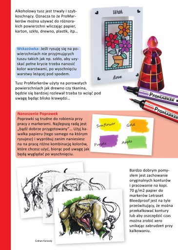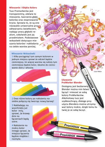 ProMarker to cieszące się uznaniem, wysokiej jakości, uniwersalne narzędzie zarówno dla profesjonalistów jak i dla osób, które rozpoczynają ilustrowanie lub projektowanie. Zawiera permanentny tusz na bazie alkoholu. Tusz jest transparentny, co stwarza wręcz nieograniczone możliwości mieszania kolorów, tworzenia przejść tonalnych i cieniowania. Promarker posiada dwie wysokiej jakości końcówki: szeroką, skośnie ściętą - do pokrywania większych powierzchni oraz cienką - do bardziej precyzyjnej pracy. Umożliwiają one tworzenie plam koloru bez pozostawiania śladów pociągnięć markera.