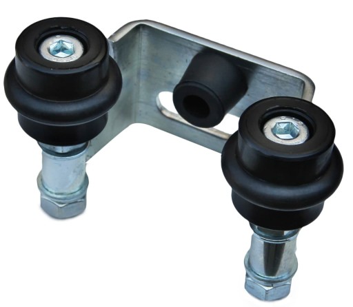 Górny uchwyt bramy przesuwnej 40 mm. Służy do ustabilizowania bramy w pozycji zamkniętej uniemożliwiając jej ruchy boczne podczas silnych wiatrów. Uchwyt wyposażony w gumowe rolki, które minimalizują hałas podczas wprowadzania bramy oraz ułatwiają jej domykanie. Produkt jest wykonany ze stali i w całości ocynkowany.