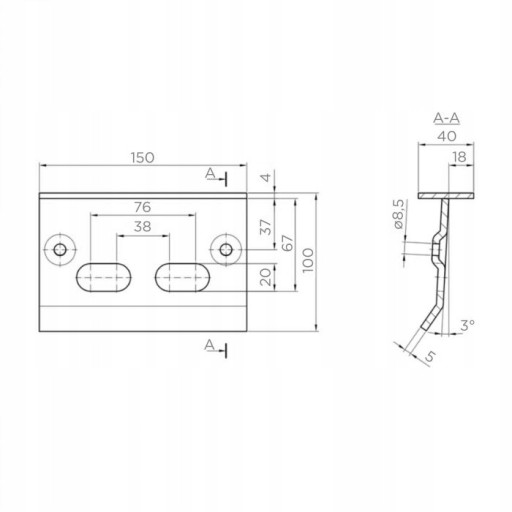 Stoper, odbojnik do bramy skrzydłowej z otworami pod rygiel