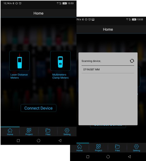 Multimetr DT-965BT za pośrednictwem interfejsu Bluetooth współpracuje z oprogramowaniem Meterbox Pro. Program dostępny jest bezpłatnie w sklepach Android Play i App Store.