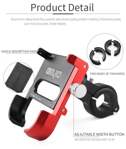 Uchwyt na telefon, smartfon wykonany z aluminium. Bardzo lekki 120g. Można montować na rurę 20-33mm. Szerokość telefonu 55-100mm. Obracany o 360 stopni.