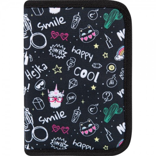 Piórnik z wyposażeniem, który swoim wzorem łączy się z plecakiem i workiem Happy Cool z serii Hejka tu Lenka.