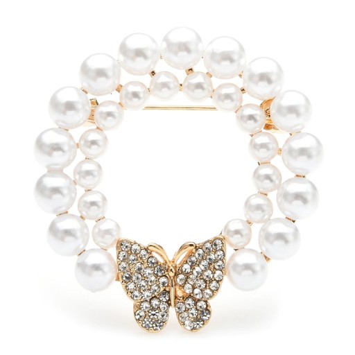 -% ЖЕМЧУЖНАЯ БРОШЬ-РОЗЕТКА С БАБОЧКОЙ
