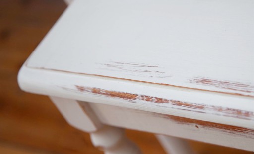 - W przypadku chęci uzyskania efektu antycznego należy nałożyć dwwie warstwy farby o kontrastującym kolore. Pozostawić do wyschnięcia. Następnie lekko przeszlifować wilgotnym papierem ściernym lub padem czyszczącym ze stali nierdzewnej - szlifować wzdłuż słoi drewna.