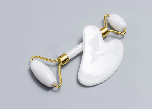 Masażer do twarzy z jadeitu oraz płytka do masażu Gua Sha.