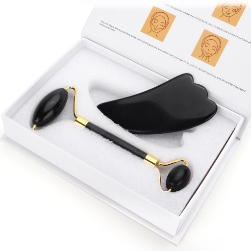 Masażer do twarzy z jadeitu oraz płytka do masażu Gua Sha.