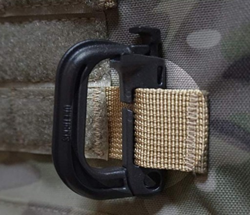 Plastikowy karabińczyk z blokadą na przycisk i zatrzaskiem oraz możliwością montażu w systemie MOLLE / PALS