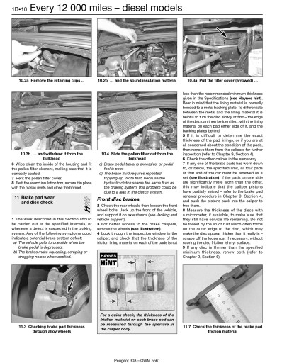 Książka nie zawiera danych do modelu 308 CC Coupe oraz silnika benzynowego 2.0 L i diesla 2.0 L.