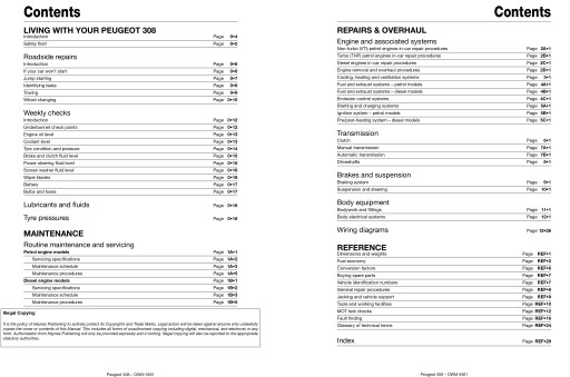 W książce opisano samochody marki Peugeot 308 wyposażone w silniki benzynowe i wysokoprężne Diesla.
