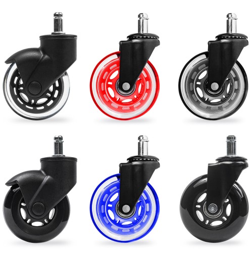 Kółka posiadają trzpień 11mm x 22mm co sprawia, że pasują niemal do każdego krzesła obrotowego.