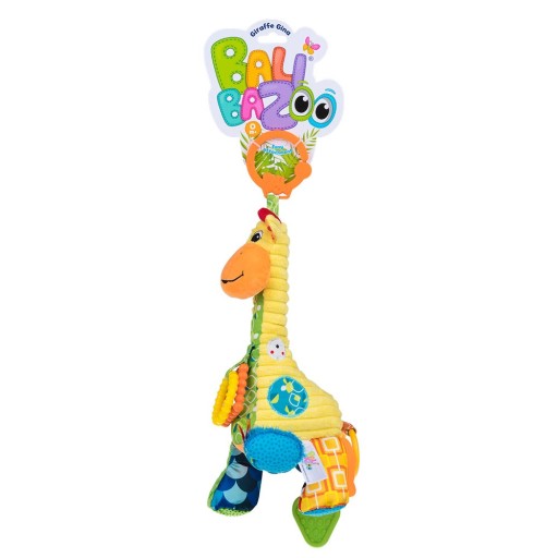Żyrafka Gina kocha wszystkie maluchy i potrafi ukołysać je do snu grając słodką kołysankę. Wystarczy pociągnąć jej ogonek, aby dziecięcy pokój wypełniły piękne dźwięki. Ten przyjazny pluszak posiada różne elementy, którymi zabawi bobasa: przyjazne lusterko, plastikowe kółeczko i kwadracik z wypustkami, a nawet miękki gryzaczek. Pomysłowa zawieszka pozwoli jej zająć wygodne miejsce w każdym wózku, łóżeczku, huśtawce czy leżaczku.