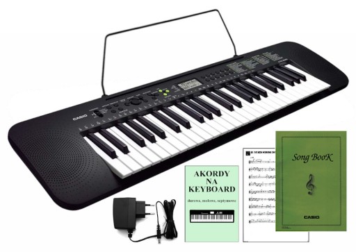 W komplecie podręcznik z nutami 50 utworów edukacyjnych CASIO Song Book, oraz podręcznik AKODRY NA KEYBOARD durowe, molowe, septymowe.