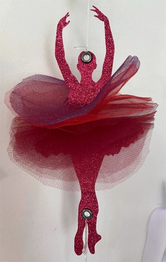 Wykonana z brokatowej pianki kreatywnej, tiulu i akrylowych kryształków. Na dole ozdoby znajduje się kryształek w kształcie diamentu (na innej aukcji w kształcie serduszka).