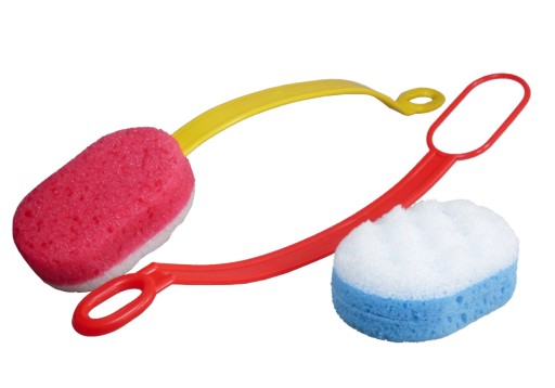 - Gąbka z długim, profilowanym uchwytem do mycia pleców.