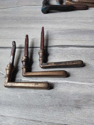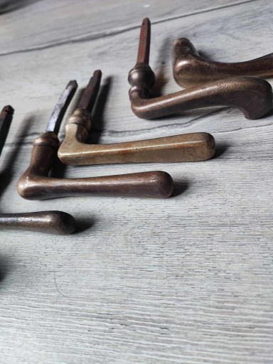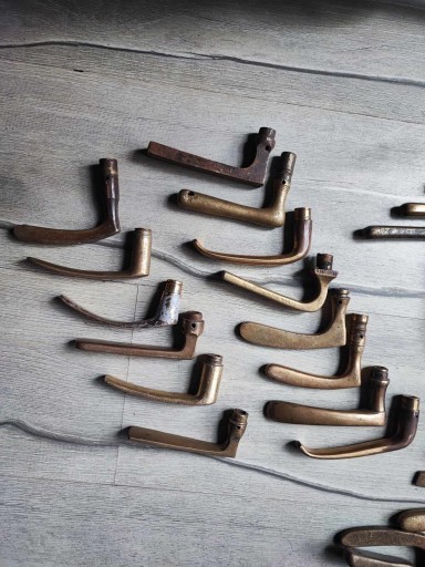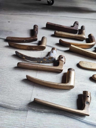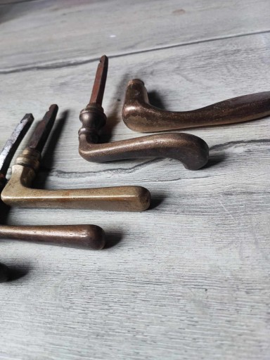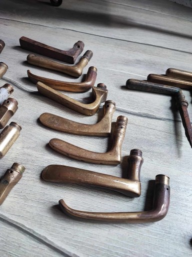 Stara mosiężna klamka do drzwi,cena za 1 szt.,po zakupie napisz którą klamkę wybierasz,z lewej czy z prawej strony patrząc na ekran z góry z dołu,ostatnie foto przedstawia jeszcze 5 szt.mosiężnych klamek,na innych moich aukcjach znajdziesz inne szyldy,klamki,bibeloty,klosze oraz wszystko co ci potrzebne do lamp,lampek,żyrandoli,kinkietów,lamp naftowych,zobacz inne moje aukcje,wystawiam ok.3150 aukcji,wszystko jak na zdjęciach,przeczytaj stronę o sprzedają....-kupując akceptujesz warunki tam zawarte