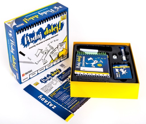 Wielokrotnie nagradzana gra Podaj dalej! zapewni Twojej rodzinie i przyjaciołom świetną rozrywkę i niezapomniane chwile niepowstrzymanego śmiechu. Narysuj to co widzisz i odgadnij to co widziałeś, a następnie podziwiaj nieprzewidywalny efekt ciągu skojarzeń wszystkich uczestników zabawy.