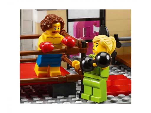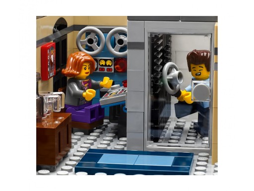 Wpadnij do baru w śródmieściu z zestawu 10260 z serii LEGO® Creator Expert. Czeka tu na Ciebie solidna porcja zabawy i niespodzianek! Ten wspaniały model ma zdejmowane sekcje, które ułatwiają dostęp do bogatego w detale wnętrza. Na parterze mieści się knajpka w stylu lat 50 XX w. z dużą, zakrzywioną witryną, barem, czerwonymi stołkami przy barze, szafą grającą i otwartą kuchnią. Na poziomie środkowym znajdziesz salę gimnastyczną z ringiem, workiem bokserskim i siłownią, a na górnym piętrze mieści się studio nagraniowe z kabiną wokalną, stołem mikserskim i szafką z napojami i przekąskami. Utrzymana w stylu późnego Art Deco fasada w kolorach różu i morskiej wody nosi wielki szyld „DINER”. Z zewnątrz można zauważyć także inne szczegóły: łukowate okna, balkony i klatkę schodową, a także różowy kabriolet i chodnik z szeregiem detali, takich jak skrzynka pocztowa, parkometr, donice i latarnia. Zbudowanie tego niesamowitego modelu kolekcjonerskiego da każdemu konstruktorowi mnóstwo satysfakcji z nutką nostalgii. W zestawie jest 6 minifigurek.