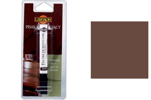Pisak retuszujący Libéron doskonale sprawdzi się podczas naprawiania drobnych ubytków na drewnianych przedmiotach – za jego pomocą zamalujesz nieestetyczne rysy oraz zadrapania. Produkt sprawdza się na podłożach surowych, woskowanych i lakierowanych, więc jest uniwersalny i wykorzystasz go na różnych powierzchniach. W ofercie znajdziesz też pisaki w innych odcieniach.