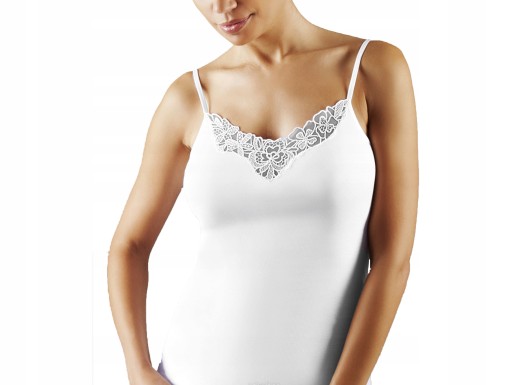 To propozycja dla pań łączących wygodę z elegancją i stylem każdego dnia. Jednolita koszulka występująca w bazowej kolorystyce będzie idealnym uzupełnieniem każdej stylizacji! Została wykonana z najwyższej jakości materiału, zapewniającej dużą wytrzymalość, przewiewność i wysoki komfort noszenia, jest przy tym mięciutka i miła w dotyku niczym puch. Podkreśla figurę, idealnie dopasowuje się do kształtów ciała, nie marszczy się. Ładny krój (dekolt lekko spiczasty wykonczony kwiatowym wzorem) świetnie nadaje się zarówno pod obcisłą bluzkę, jak i do samodzielnego noszenia. Słowem: luksus wygody - przy perfekcyjnej prezentacji.