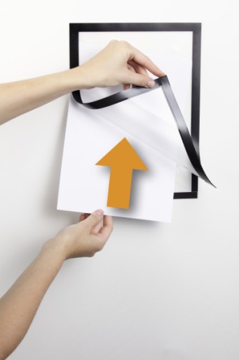 - Wymiana arkusza w środku jest łatwa i szybka dzięki uchylnej magnetycznej ramce.